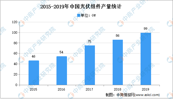 光伏是太陽能光伏發(fā)電系統(tǒng)的簡稱,是一種利用太陽電池半導體材料的光伏效應,將太陽光輻射能直接轉換為電能的一種新型發(fā)電系統(tǒng),有獨立運行和并網運行兩種方式。光伏組件是太陽能發(fā)電系統(tǒng)中的核心部分,也是太陽能發(fā)電系統(tǒng)中最重要的部分。數據顯示,2019年我國光伏組件產量為98.6GW,同比增長17%。