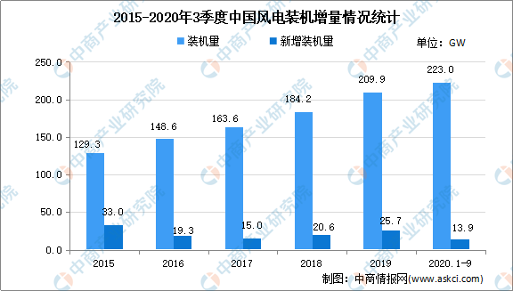 隨著世界各國對能源安全、生態(tài)環(huán)境、氣候變化等問題的日益重視,加快發(fā)展風電產業(yè)已成為國際社會推動能源轉型發(fā)展、應對全球氣候變化的普遍共識和一致行動。近年來,我國風電裝機規(guī)模穩(wěn)步擴大。數據顯示,2020年前三季度我國風電裝機2.23億千瓦,其中陸上風電累計裝機2.16億千瓦、海上風電累計裝機750萬千瓦。2020年前三季度,全國風電發(fā)電量3317億千瓦時,同比增長13.8%。