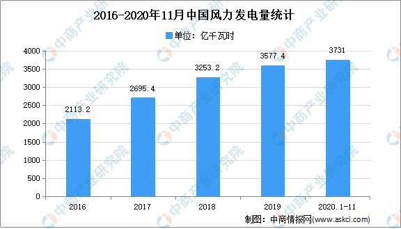 風力發(fā)電是指把風的動能轉為電能,是一種清潔無公害的的可再生能源。數據顯示,2019年我國風力發(fā)電量達3577.4億千瓦時。風力發(fā)電持續(xù)增長,2020年1-11月風力發(fā)電量為3731億千瓦時,同比增長10.7%。