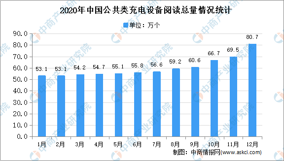 近年來,隨著新能源汽車保有量不斷提升,充電樁、換電站等基礎設施加快完善。數據顯示,截至2020年12月,聯盟內成員單位總計上報公共類充電樁80.7萬臺,其中交流充電樁49.8萬臺、直流充電樁30.9萬臺、交直流一體充電樁481臺。從2020年1月到2020年12月,月均新增公共類充電樁約2.4萬臺。