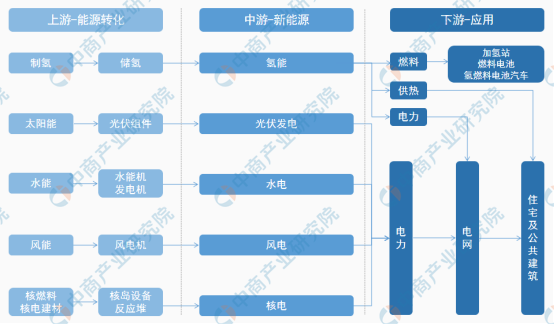 新能源產業(yè)鏈主要由上游的能源轉化,中游的新能源和下游的應用構成。