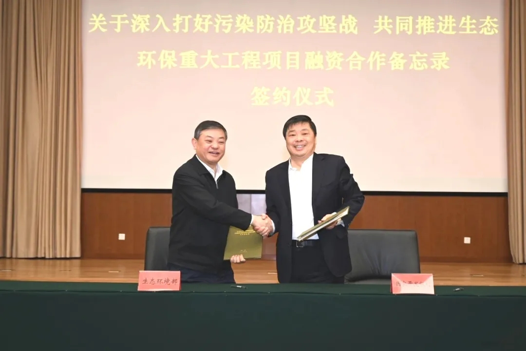 國開行黨委副書記、行長(zhǎng)歐陽衛(wèi)民與生態(tài)環(huán)境部部長(zhǎng)黃潤(rùn)秋座談交流并代表雙方簽署備忘錄。
