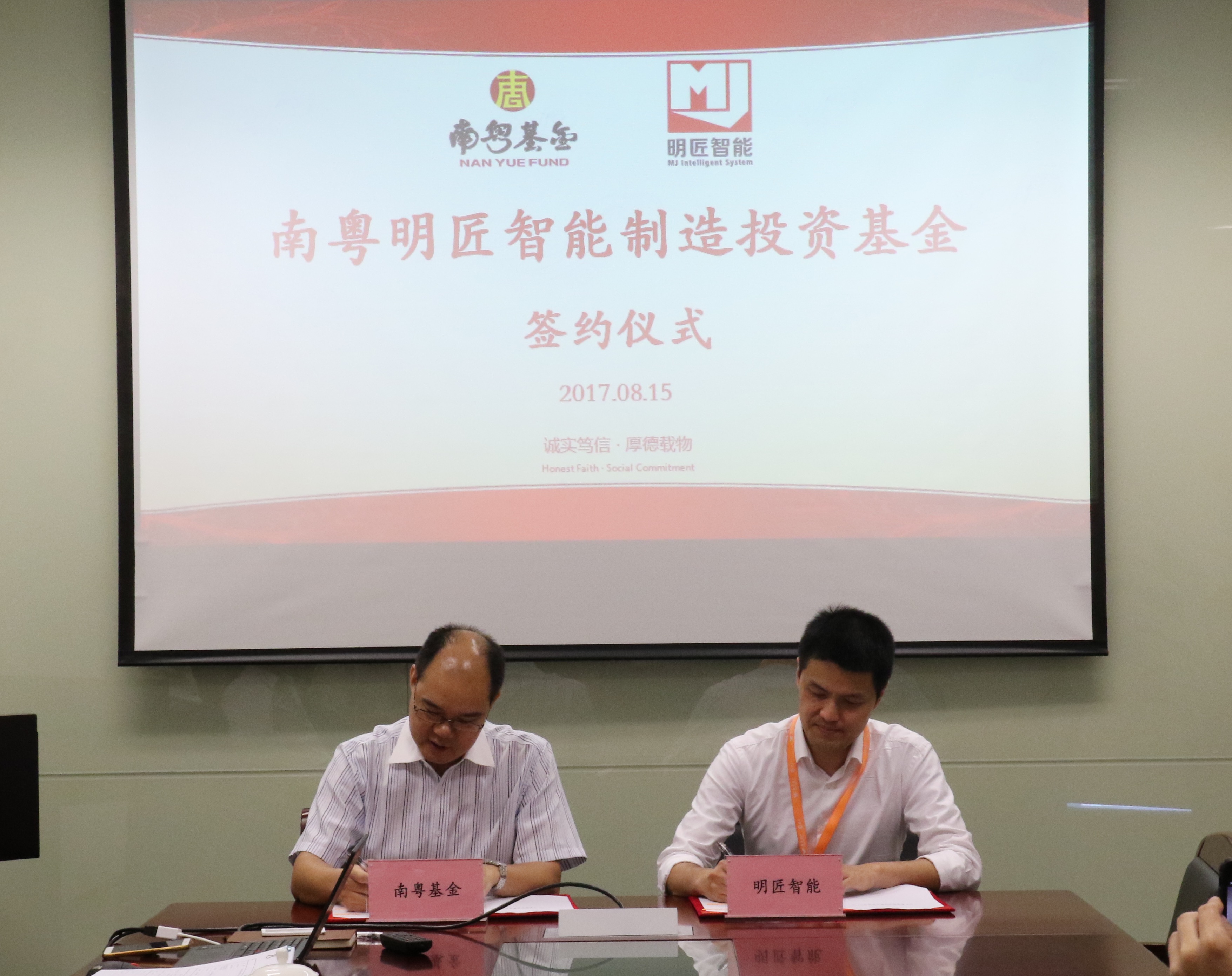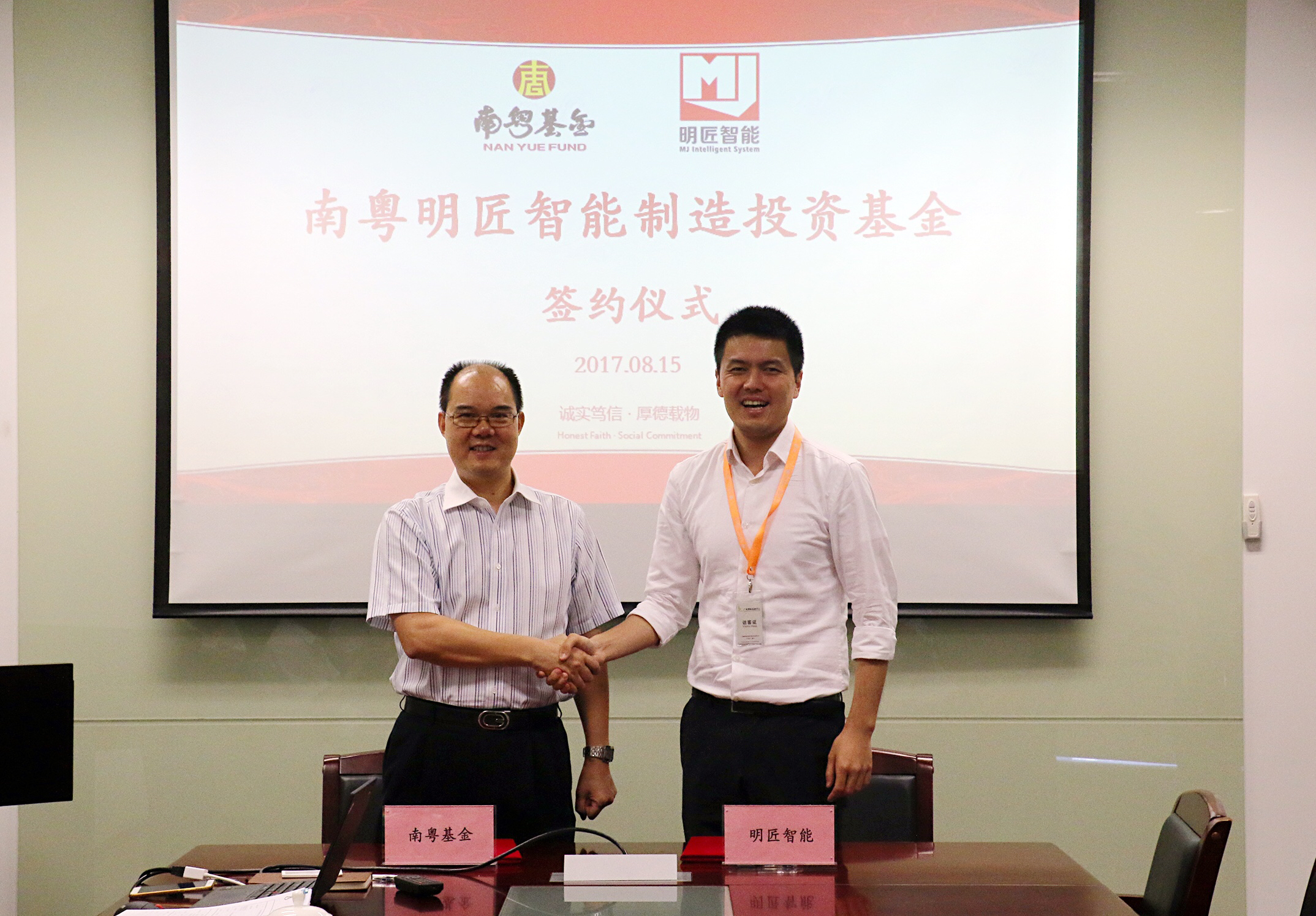 8月15日上午,廣州南粵基金集團有限公司(以下簡稱“南粵基金”)與上海明匠智能系統(tǒng)有限公司(以下簡稱“明匠智能”)在廣州國際金融中心共同簽署基金投資協(xié)議。南粵基金集團總裁曾金賢、明匠智能公司董事長陳俊等領(lǐng)導出席本次簽約儀式。