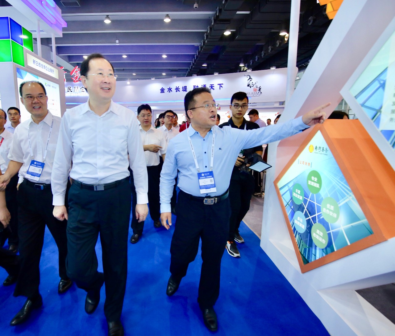 6月22日,第七屆中國(廣州)國際金融交易·博覽會(簡稱“金交會”)在廣州·中國進(jìn)出口商品交易會展館B區(qū)正式開幕。廣東省委副書記、廣州市委書記任學(xué)鋒,廣州市委副書記、市長溫國輝,廣州市委常委、常務(wù)副市長陳志英到金交會展館巡館調(diào)研。上午11時許,任學(xué)鋒書記一行專程來到廣州南粵基金集團(tuán)有限公司(簡稱“南粵基金”)展廳,了解南粵基金服務(wù)的廣東省重大投資項目——超視堺第10.5代顯示器全生態(tài)產(chǎn)業(yè)園區(qū)(簡稱“超視堺8K”)項目進(jìn)展情況,南粵基金董事長林濤、總裁曾金賢陪同并介紹相關(guān)情況。