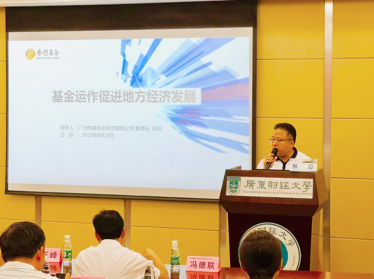 8月25—30日,由廣東省委組織部主辦的“2019年處級干部金融管理與改革創(chuàng)新綜合能力提升班(湛江班)”在廣東財經(jīng)大學開課。政府經(jīng)濟管理博士后、2018年全國金融創(chuàng)新十大杰出人物、廣州南粵基金集團有限公司(簡稱“南粵基金”)董事長林濤受邀授課。
