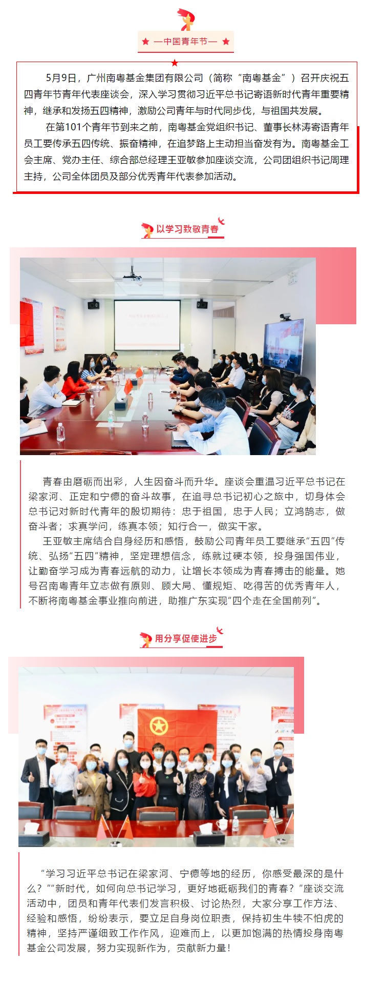 傳承五四薪火 砥礪奮斗青春 ——南粵基金召開慶祝五四青年節(jié)青年代表座談會(huì)