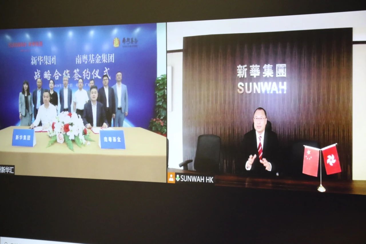 7月27日,廣州南粵基金集團(tuán)有限公司(簡稱“南粵基金”)與香港新華集團(tuán)(簡稱“新華集團(tuán)”)在廣州簽署戰(zhàn)略合作協(xié)議。全國政協(xié)常委、香港中華總商會(huì)會(huì)長、新華集團(tuán)主席蔡冠深視頻出席簽約儀式,并與南粵基金董事長林濤一行就推進(jìn)“一帶一路”業(yè)務(wù)拓展、粵港澳大灣區(qū)建設(shè)等全方位多領(lǐng)域合作進(jìn)行了深入交流。新華集團(tuán)主席助理張曉峰、華南區(qū)總經(jīng)理方玲、川渝大區(qū)總裁吳發(fā)強(qiáng),南粵基金副總裁肖磊等參加簽約活動(dòng)。