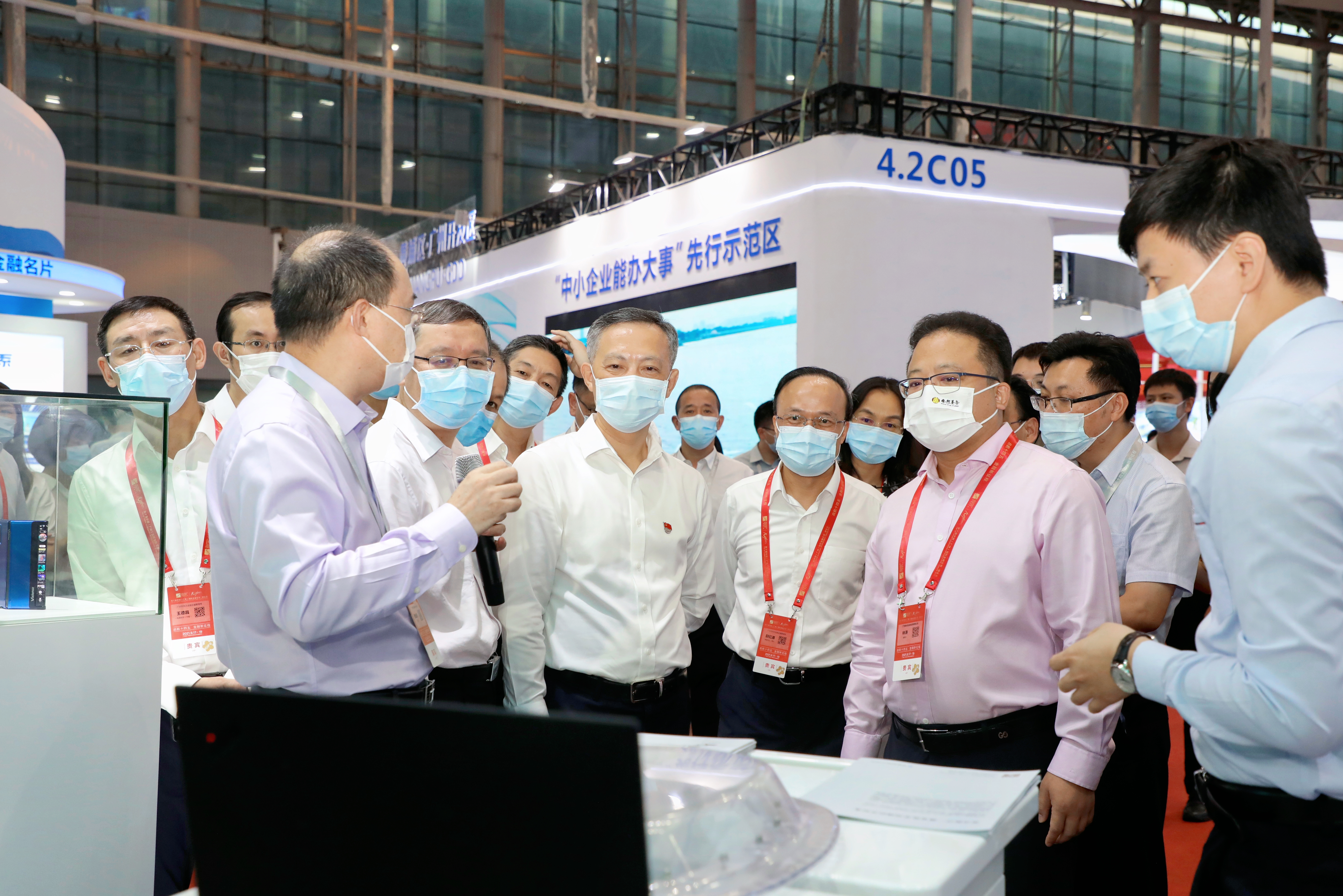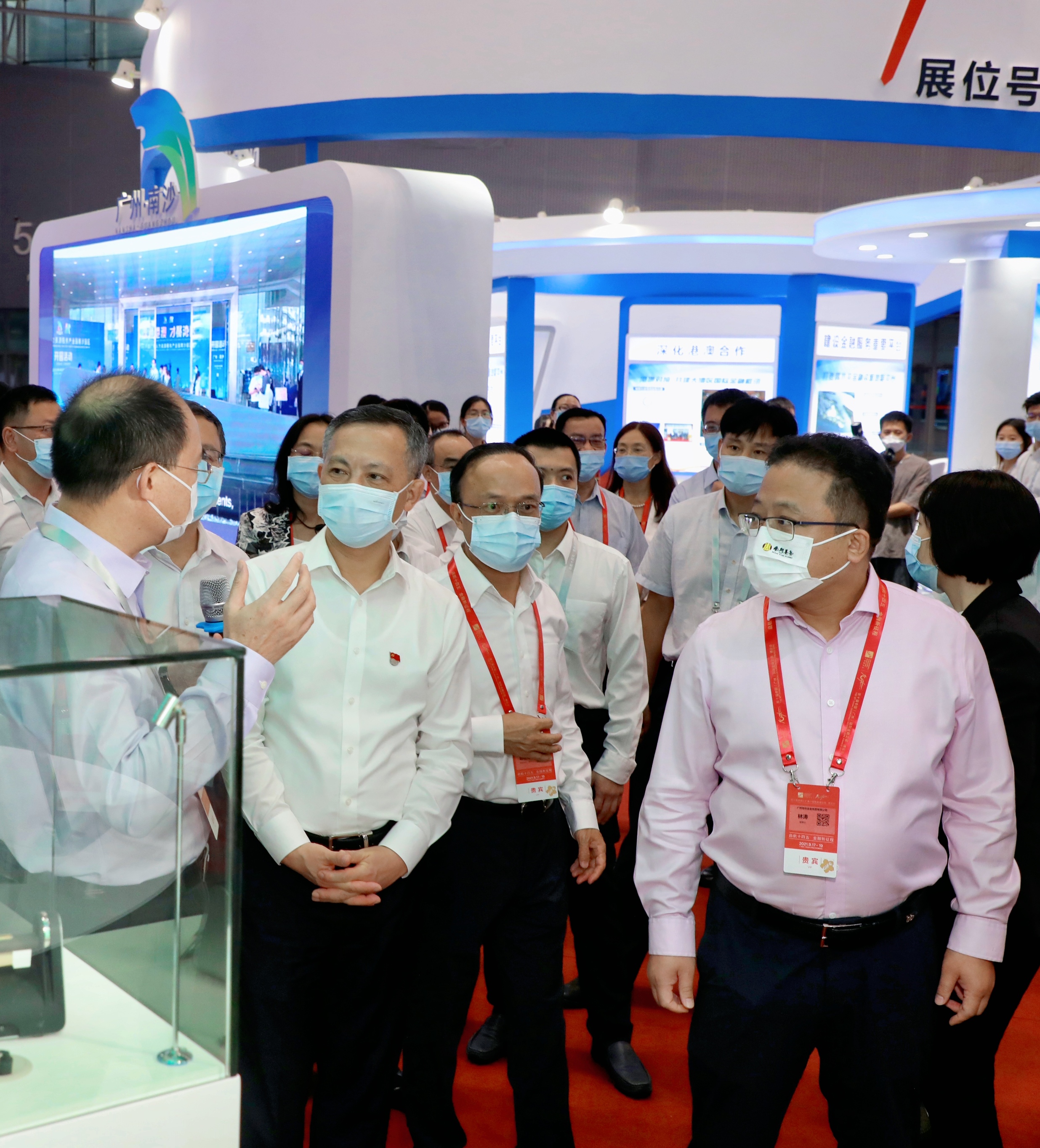 9月18日,第十屆中國(廣州)國際金融交易·博覽會(簡稱“金交會”)期間,廣東省委常委、廣州市委書記張碩輔在市領導陳志英、市地方金融監(jiān)督管理局局長邱億通等陪同下,蒞臨南粵基金金交會展廳視察指導。南粵基金董事長林濤、總裁曾金賢陪同視察并匯報公司助力鄉(xiāng)村振興、新型顯示產業(yè)和醫(yī)療器械創(chuàng)新發(fā)展等工作情況。