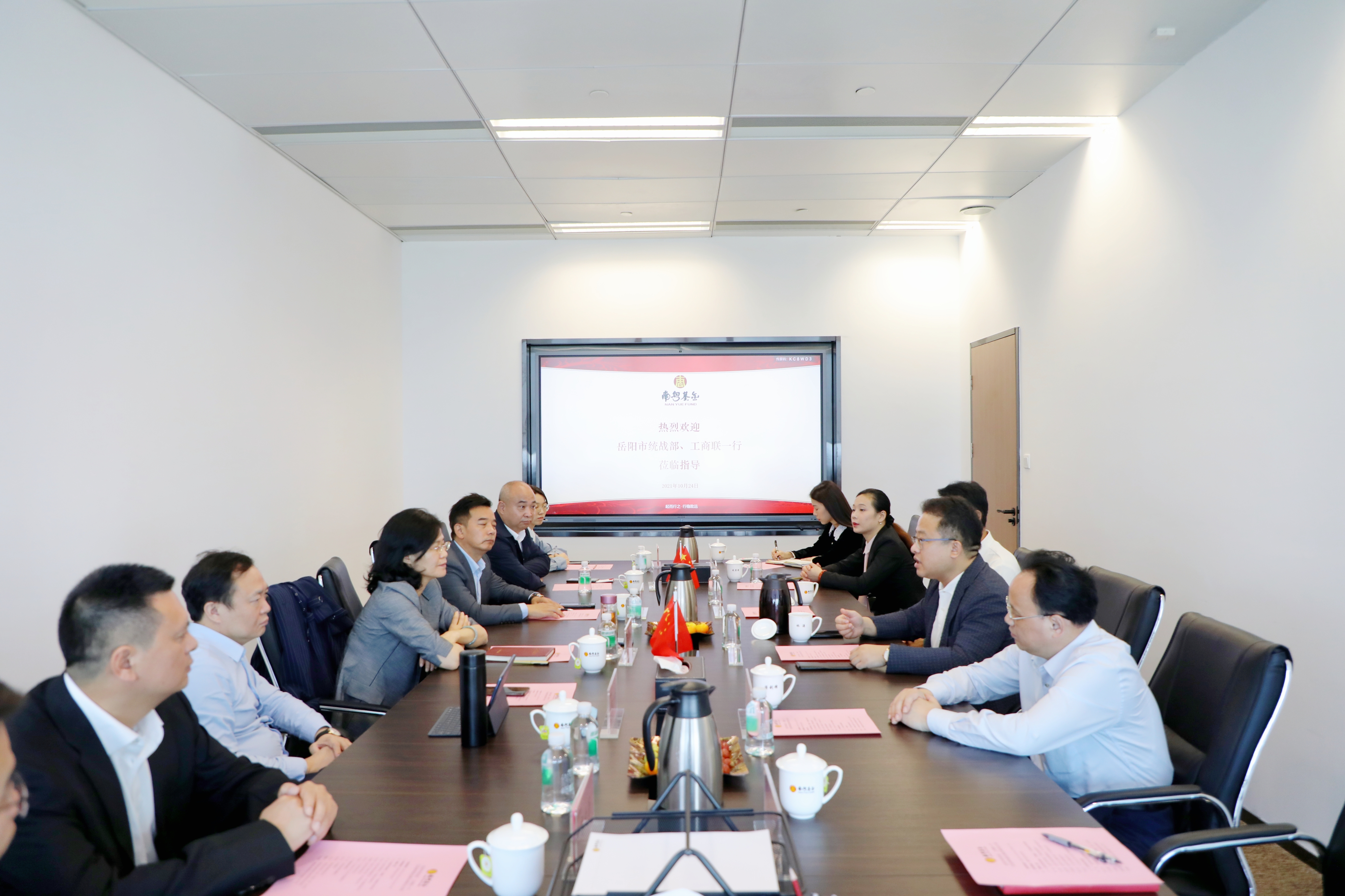 10月24日,岳陽市委常委、統(tǒng)戰(zhàn)部部長邱虹,廣東財經(jīng)大學副校長鄒新月一行到訪南粵基金總部,與集團董事長林濤就金融支持產(chǎn)業(yè)轉(zhuǎn)型升級、招商引資和招才引智等多領(lǐng)域深入交流合作舉行會談,并達成重要共識。