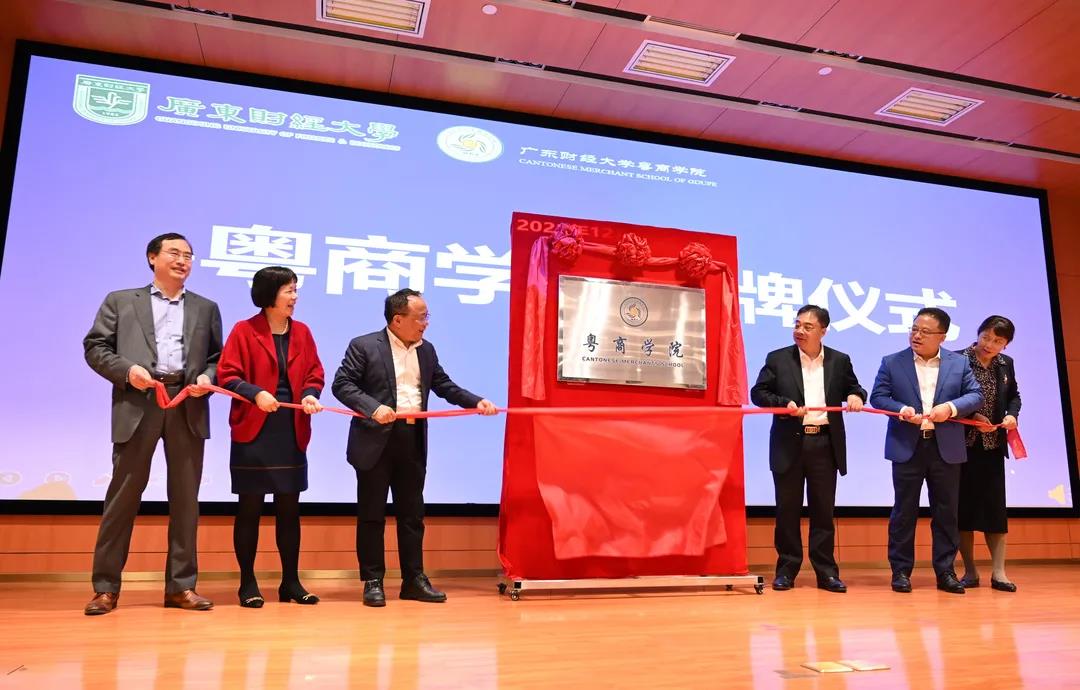 會上,粵商學(xué)院正式掛牌。鄭賢操書記、于海峰校長、林濤董事長、張艷梅顧問、廣財(cái)研究生院院長謝雄偉、MBA學(xué)院顧文靜副院長一同出席掛牌儀式。