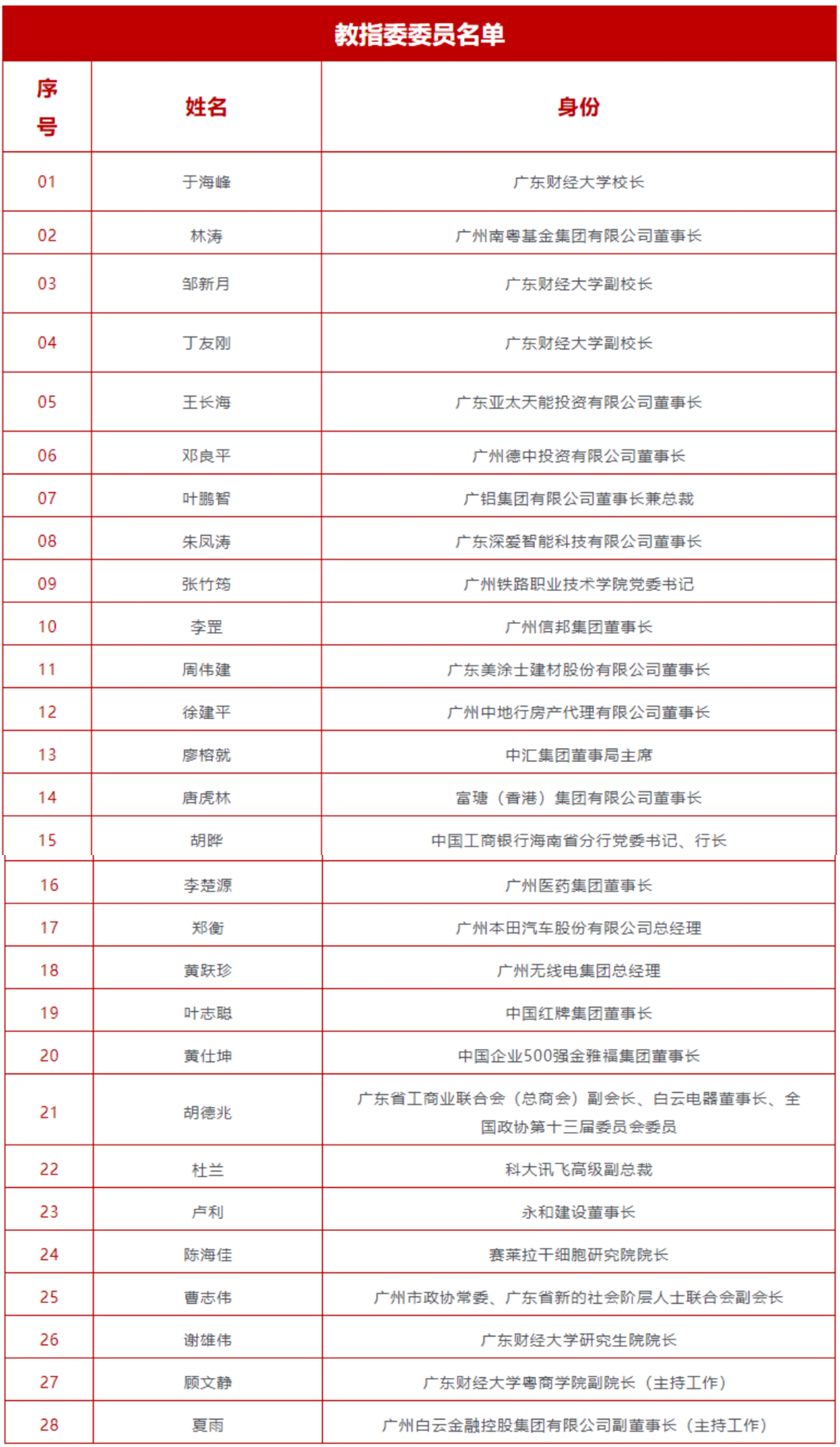 廣財(cái)MBA教育辦學(xué)十年來,秉承“精商通法,敦行致遠(yuǎn)”辦學(xué)理念,踐行“培育業(yè)界精英、弘揚(yáng)粵商文化、貢獻(xiàn)管理智慧”辦學(xué)使命,為廣東省的經(jīng)濟(jì)發(fā)展培養(yǎng)了一大批高層次人才。經(jīng)過嚴(yán)格的推薦和選聘程序,選聘了28位專家擔(dān)任教指委委員,廣財(cái)于海峰校長受聘為主任委員,林濤董事長受聘為副主任委員。