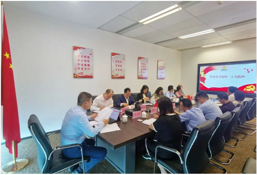 近日,南粵基金召開專題會議,傳達學習貫徹黨的二十大和二十屆一中全會精神,并結(jié)合工作實際研究貫徹落實意見。公司全體高管、中層干部參會。