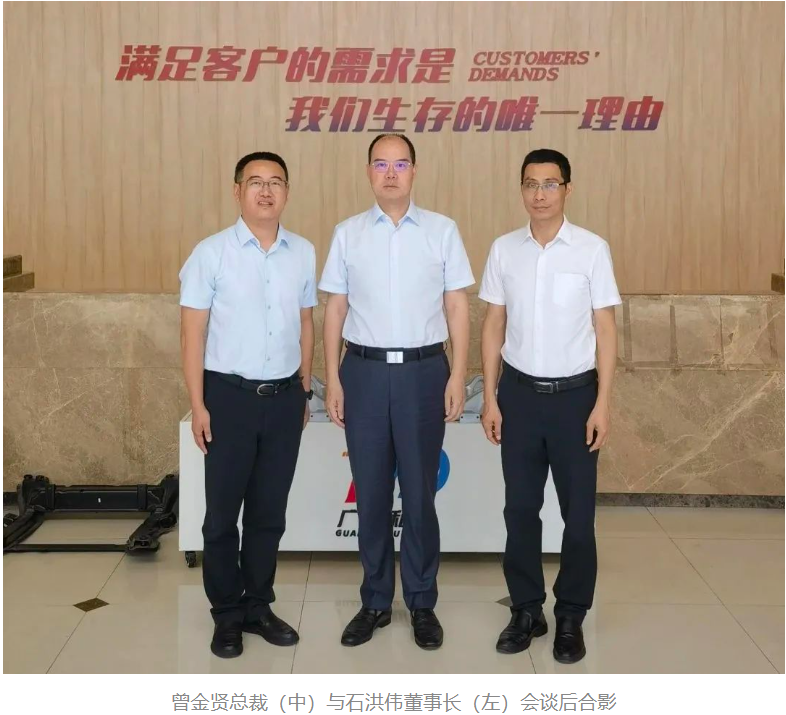 石洪偉董事長對(duì)曾金賢總裁來訪表示熱烈歡迎,并詳細(xì)介紹了廣州和德的發(fā)展歷程、核心技術(shù)產(chǎn)品及行業(yè)發(fā)展現(xiàn)狀等情況。廣州和德專注于新能源汽車輕量化部件設(shè)備研發(fā)和生產(chǎn),懸架系統(tǒng)結(jié)構(gòu)件和一體化底盤成型技術(shù)居行業(yè)領(lǐng)先地位,鋁基輕量化系列產(chǎn)品已獲得廣汽埃安、比亞迪、理想汽車等多家新能源平臺(tái)車型定點(diǎn),希望南粵基金通過區(qū)內(nèi)投資基金的投資引領(lǐng)作用,助力廣州和德快速發(fā)展,實(shí)現(xiàn)合作共贏。