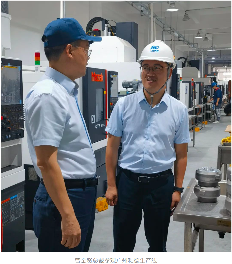 曾金賢總裁在詳細(xì)了解廣州和德的核心產(chǎn)品及產(chǎn)品應(yīng)用等情況后,對(duì)其技術(shù)優(yōu)勢(shì)、行業(yè)應(yīng)用前景等給予了充分肯定,并實(shí)地參觀了該公司生產(chǎn)線。曾金賢總裁表示,“車”作為增城重點(diǎn)培育的三大主導(dǎo)產(chǎn)業(yè)之一,其中的新能源車產(chǎn)業(yè)鏈也是南粵基金的重要投資方向,我們將通過優(yōu)化配置市場(chǎng)資源、金融資源和產(chǎn)業(yè)資源,賦能廣州和德等優(yōu)質(zhì)企業(yè)做大做強(qiáng),為增城汽車產(chǎn)業(yè)高質(zhì)量發(fā)展貢獻(xiàn)南粵力量。