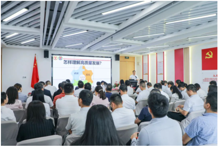 在宣講環(huán)節(jié),廣州市委黨校經(jīng)濟(jì)學(xué)教授吳兆春以《深入學(xué)習(xí)貫徹<習(xí)近平著作選讀>(第一、二卷),著力推動高質(zhì)量發(fā)展》為題,闡述了如何牢牢把握高質(zhì)量發(fā)展這個全面建設(shè)社會主義現(xiàn)代化國家的首要任務(wù)。