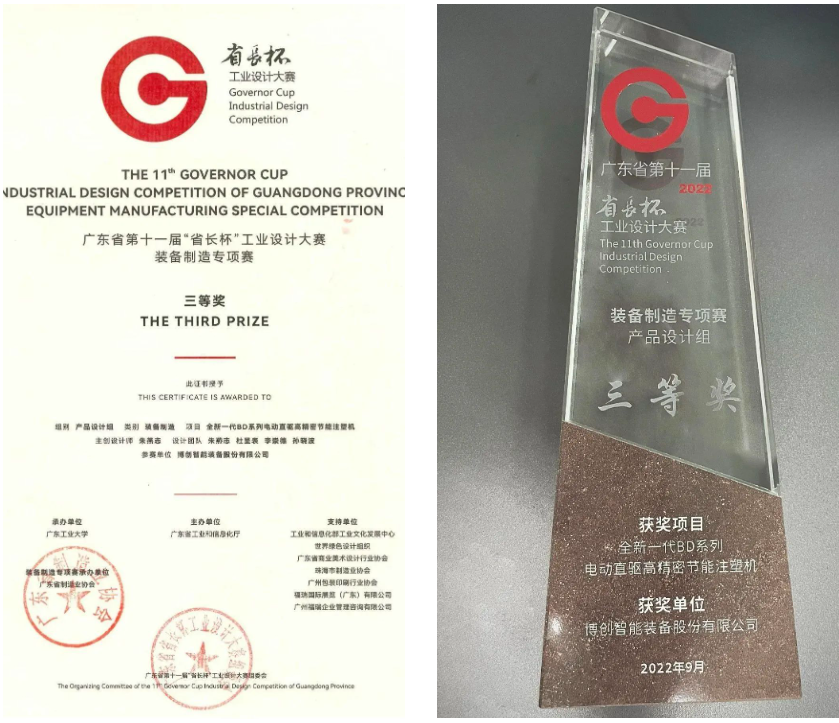 由廣東省工業(yè)和信息化廳主辦、廣東工業(yè)大學(xué)承辦的第十一屆“省長(zhǎng)杯”工業(yè)設(shè)計(jì)大賽頒獎(jiǎng)典禮近期在廣州舉行。南粵基金管理的增城引導(dǎo)基金投資企業(yè)——博創(chuàng)智能裝備股份有限公司(簡(jiǎn)稱“博創(chuàng)智能”)斬獲佳績(jī),其設(shè)計(jì)的全新一代BD系列電動(dòng)直驅(qū)高精密節(jié)能注塑機(jī),在全球28個(gè)國(guó)家和地區(qū)36000件參賽作品中脫穎而出,榮獲裝備制造專項(xiàng)賽產(chǎn)品設(shè)計(jì)組三等獎(jiǎng)。
