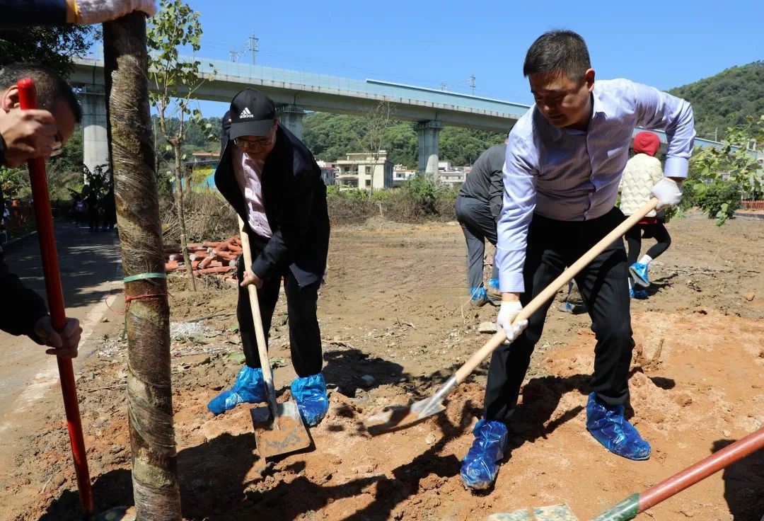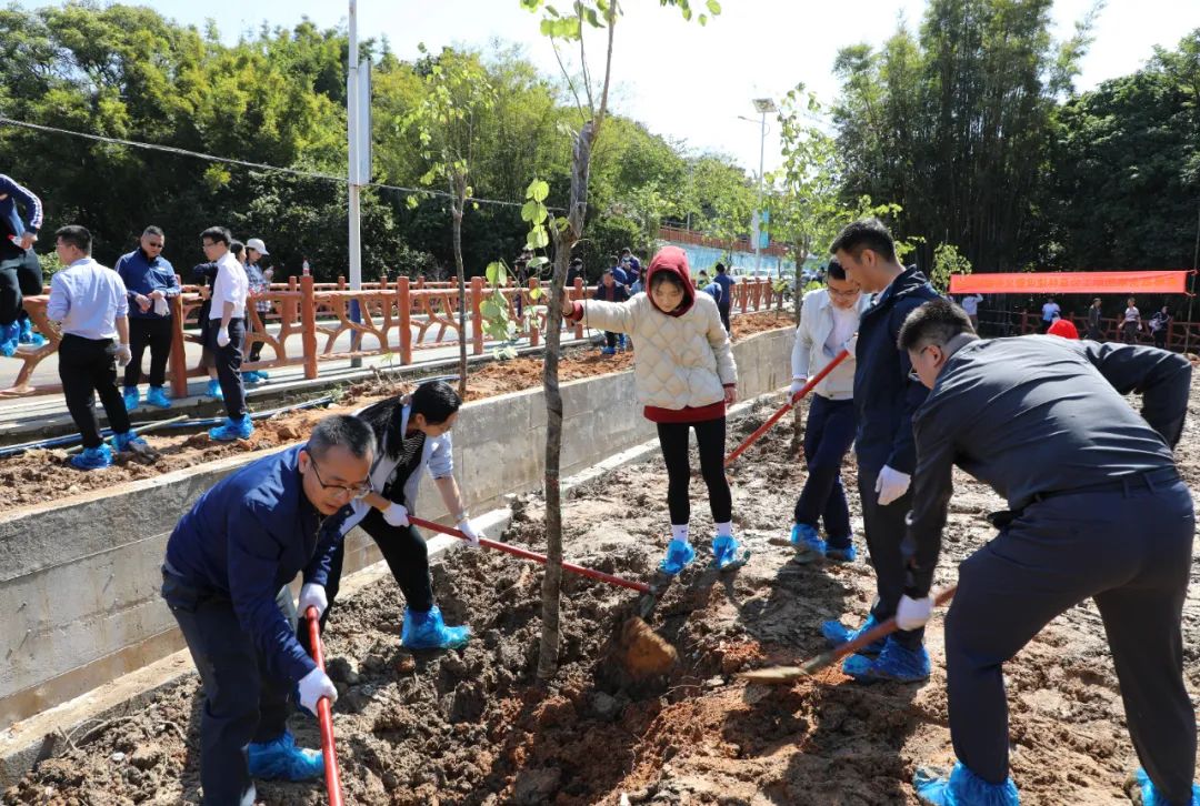 又是一年春好處,植樹添綠正當(dāng)時。為深入貫徹落實習(xí)近平生態(tài)文明思想,牢固樹立和踐行綠水青山就是金山銀山的理念,貫徹落實省委、市委、區(qū)委深入推進(jìn)綠美生態(tài)建設(shè)和鄉(xiāng)村綠化的工作部署,3月12日,正值我國第46個植樹節(jié),南粵基金集團(tuán)職工公益林建設(shè)暨義務(wù)植樹活動在永寧街葉嶺村舉行。增城區(qū)林業(yè)和園林局四級調(diào)研員黃伍二、永寧街二級調(diào)研員黃玉成,南粵基金集團(tuán)董事長肖磊、總裁譙菲菲,全體黨員干部職工及葉嶺村工作人員百余人參加活動。
