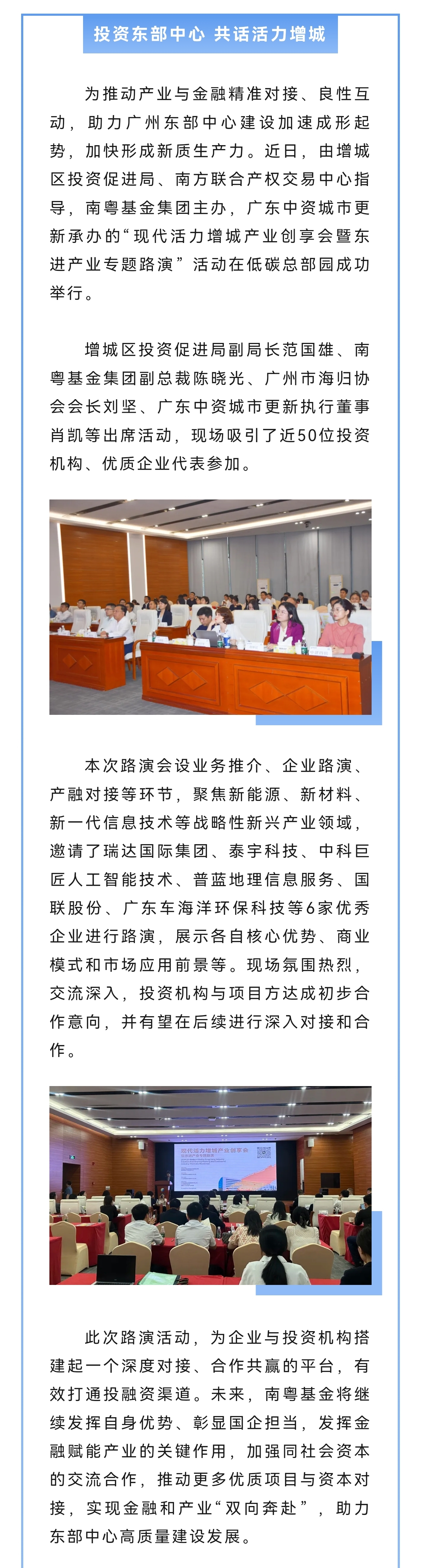 投資東部中心 共話活力增城——南粵基金集團(tuán)成功舉辦產(chǎn)業(yè)創(chuàng)享會