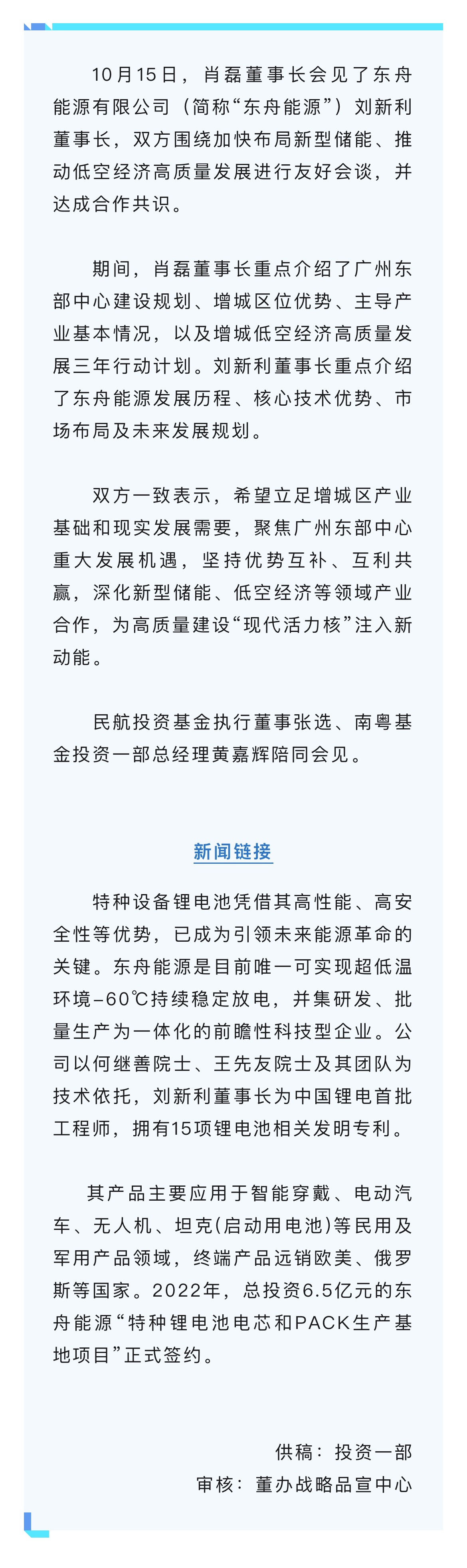 東舟能源董事長(zhǎng)劉新利到訪南粵基金集團(tuán)