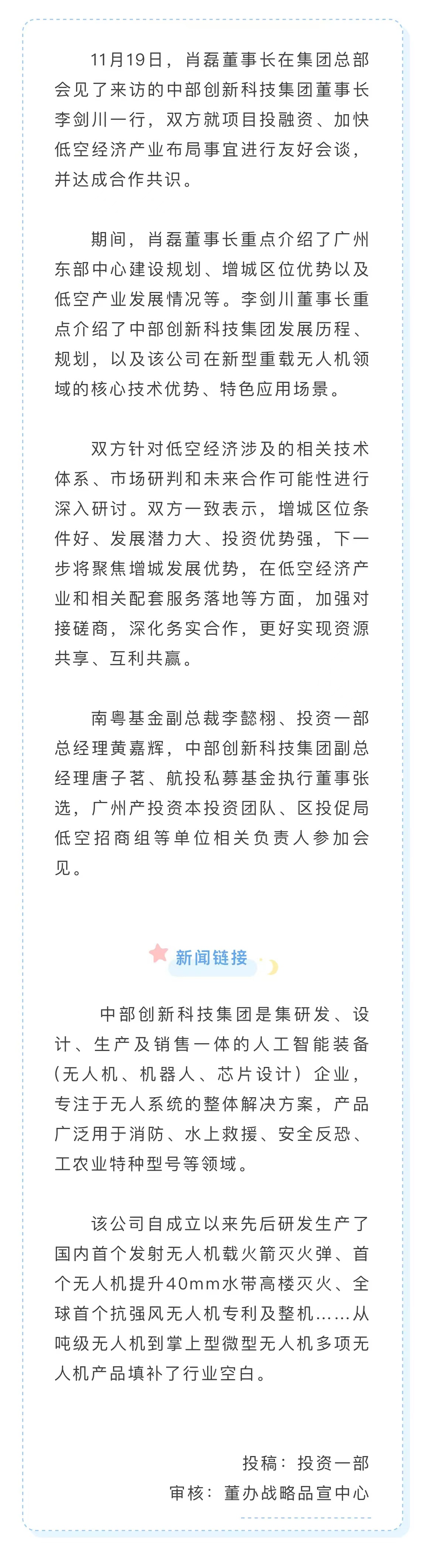 中部創(chuàng)新科技集團(tuán)董事長(zhǎng)李劍川到訪南粵基金