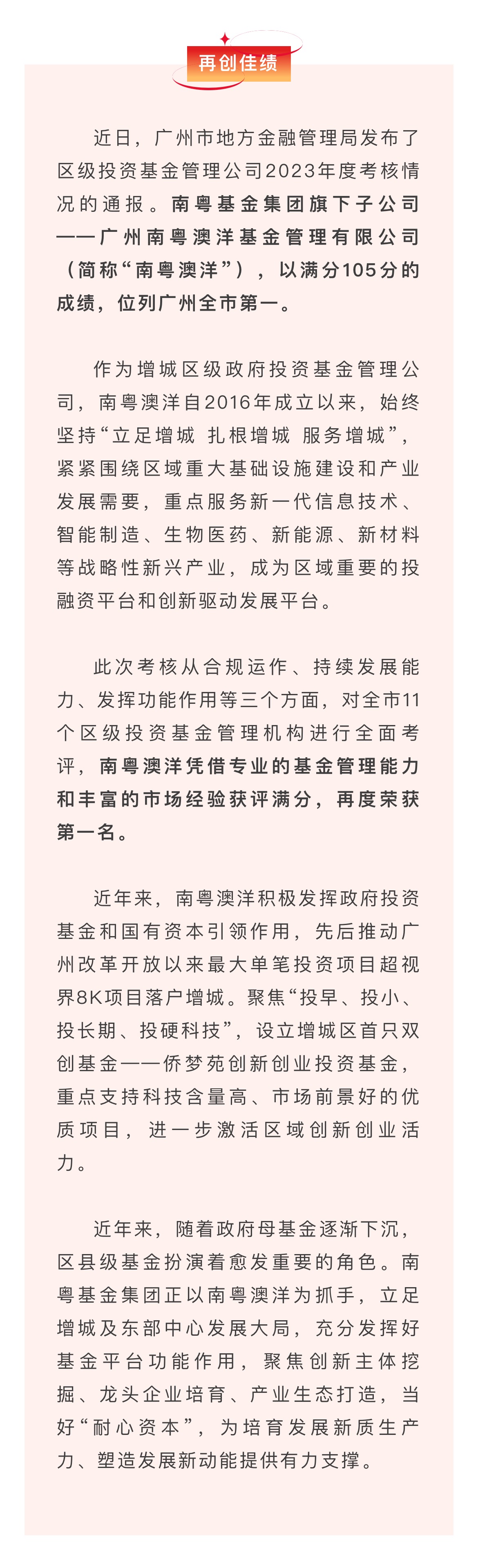 喜報!南粵澳洋再獲廣州區(qū)級基金第一