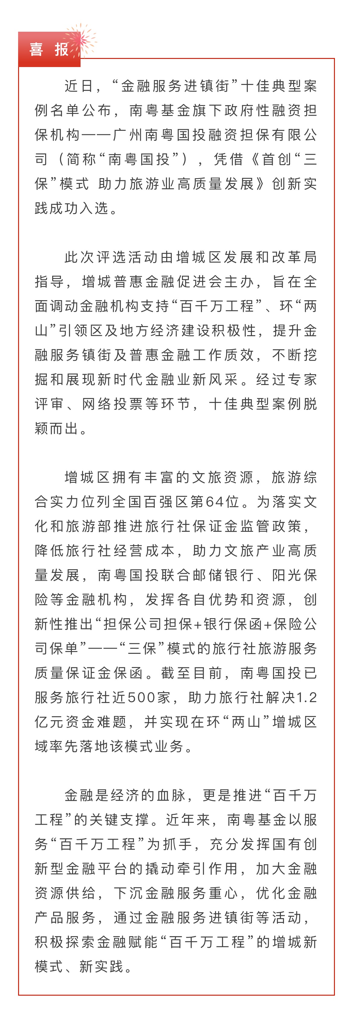 十佳!南粵國投入選“金融服務進鎮(zhèn)街”典型案例
