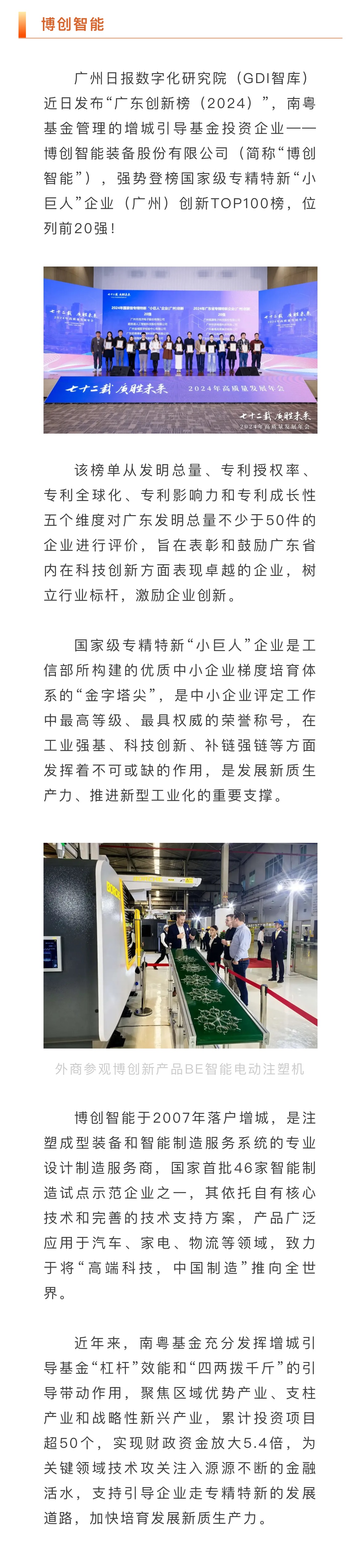 國家級專精特新“小巨人”創(chuàng)新20強!增城引導(dǎo)基金投資企業(yè)上榜