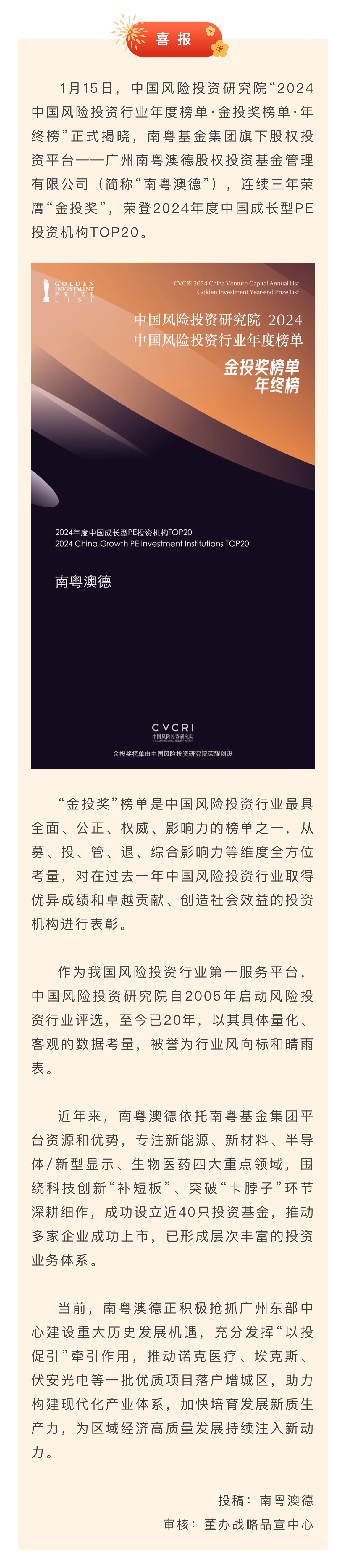 TOP20!南粵基金集團(tuán)旗下平臺(tái)連續(xù)三年榮膺“金投獎(jiǎng)”