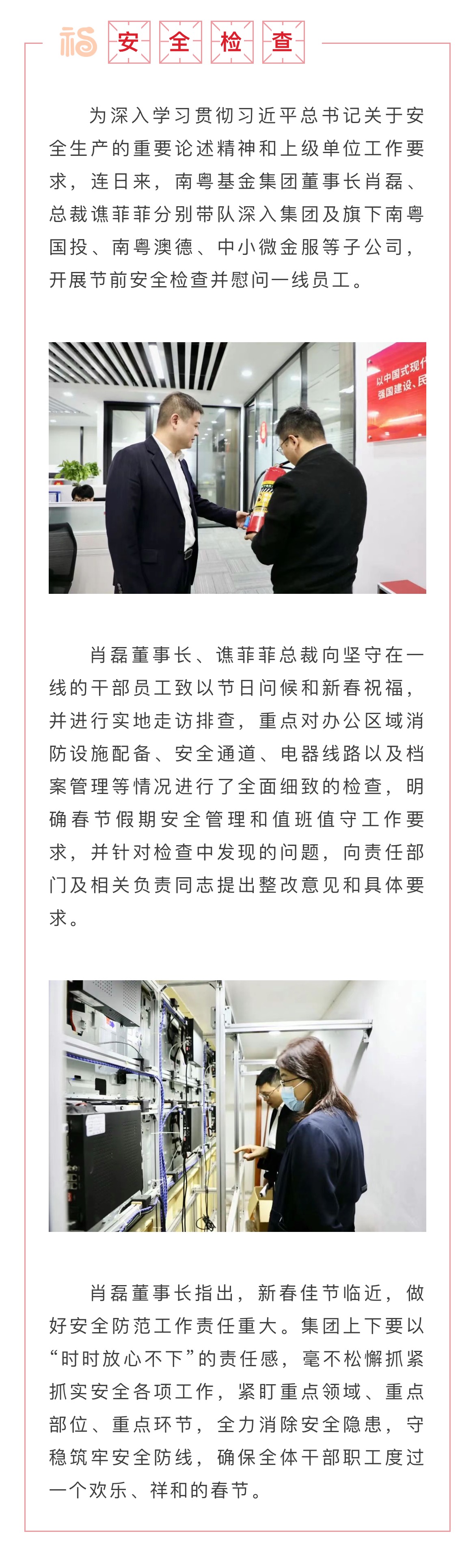 筑牢“安全關(guān)” 過(guò)好平安年——南粵基金集團(tuán)開(kāi)展節(jié)前安全檢查