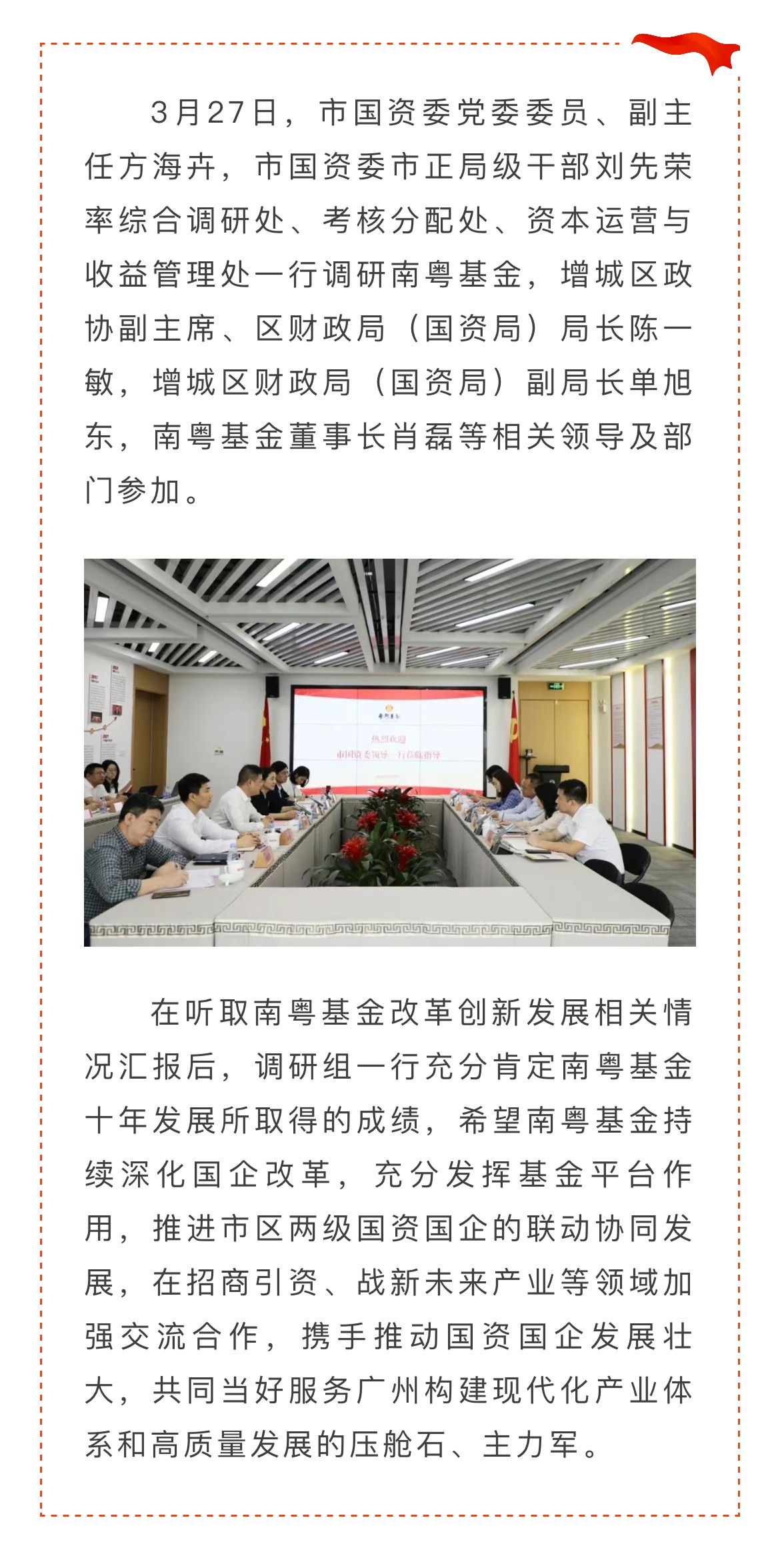市國資委領(lǐng)導(dǎo)調(diào)研南粵基金