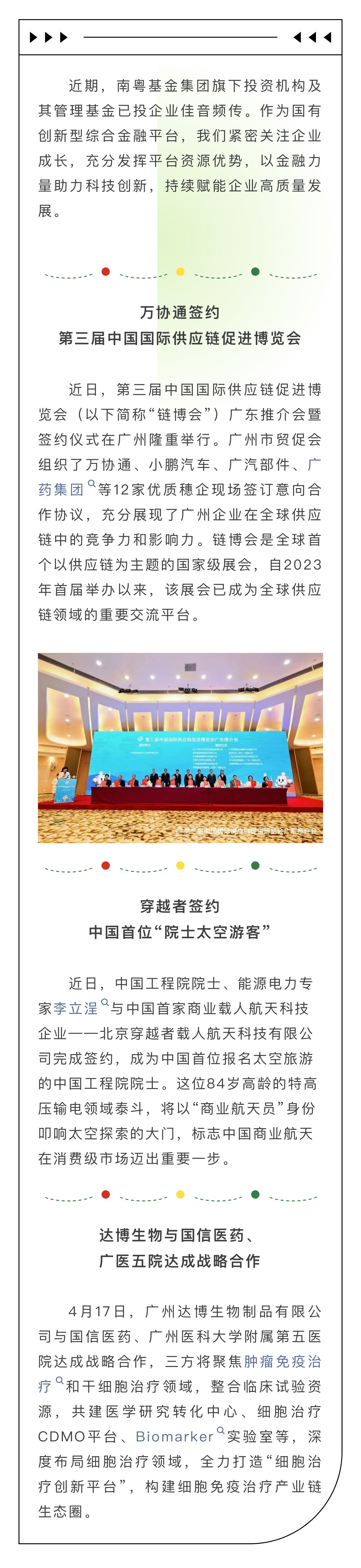 南粵基金,與企業(yè)共成長(zhǎng) | 簽約中國(guó)首位“院士太空游客”、國(guó)際鏈博會(huì)……