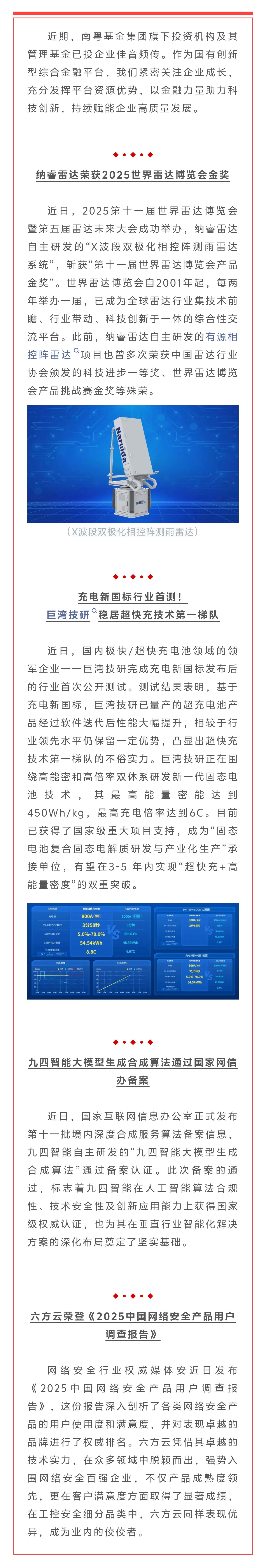 南粵基金,與企業(yè)共成長 | 世界雷達(dá)博覽會(huì)金獎(jiǎng)、充電新國標(biāo)技術(shù)第一梯隊(duì)……