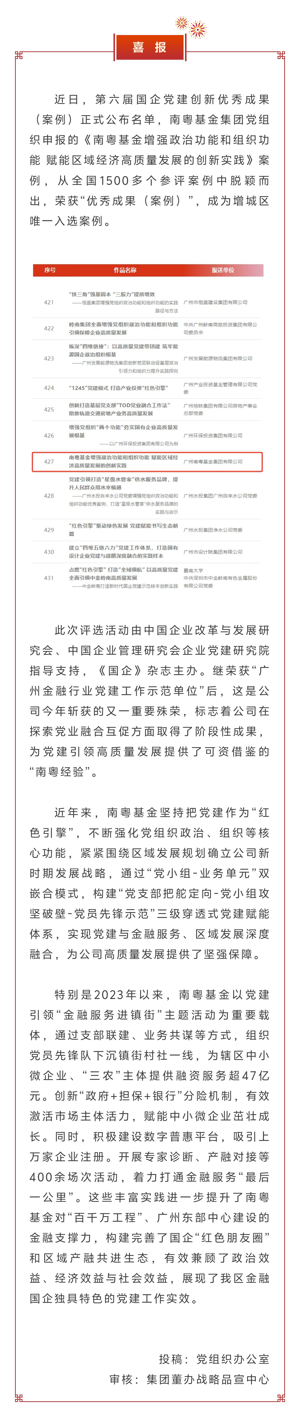 國家級(jí)!南粵基金入選全國國企黨建創(chuàng)新優(yōu)秀案例