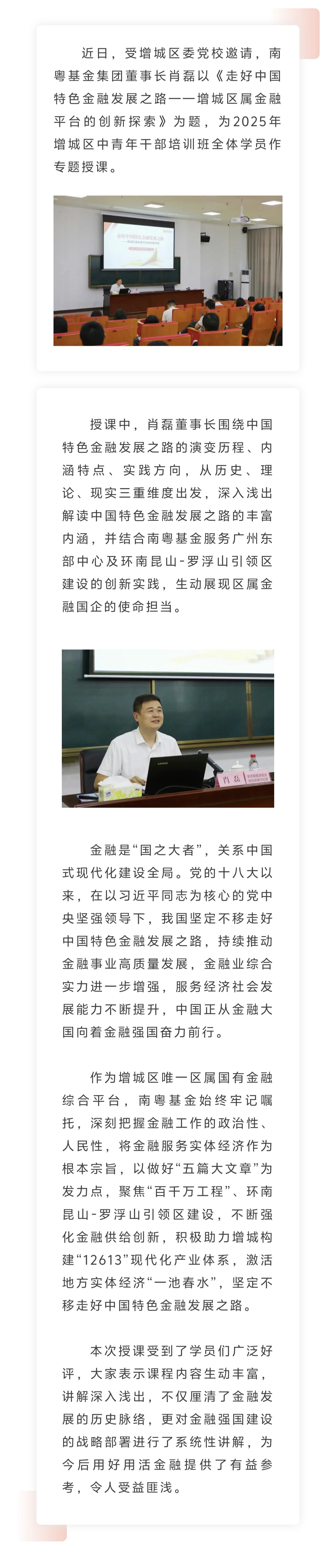 南粵基金集團(tuán)董事長肖磊受邀為增城區(qū)中青年干部培訓(xùn)班授課