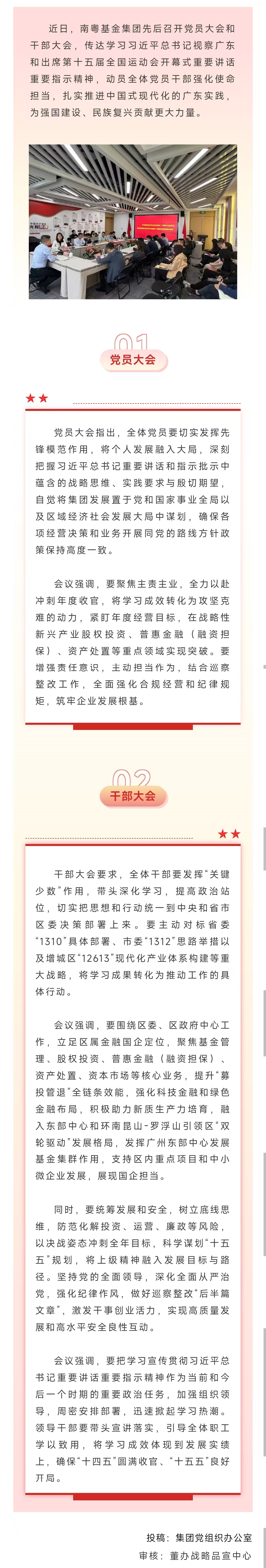 南粵基金集團召開會議傳達學習貫徹習近平總書記視察廣東和出席第十五屆全國運動會開幕式重要講話重要指示精神