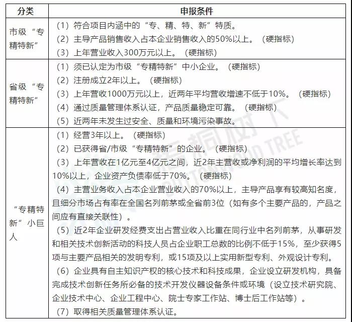 表1:“專(zhuān)精特新”企業(yè)分類(lèi)及申報(bào)條件
