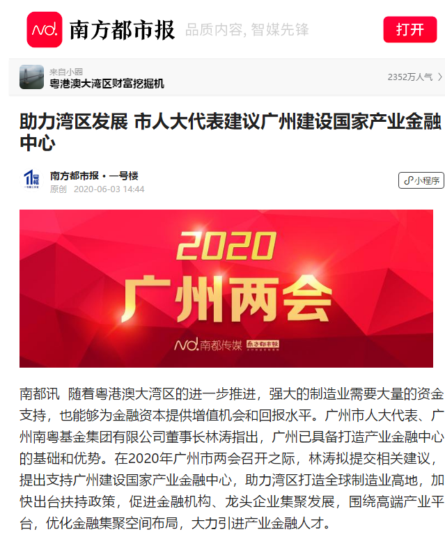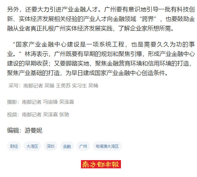 南方都市報(bào)|助力灣區(qū)發(fā)展 市人大代表建議廣州建設(shè)國(guó)家產(chǎn)業(yè)金融中心