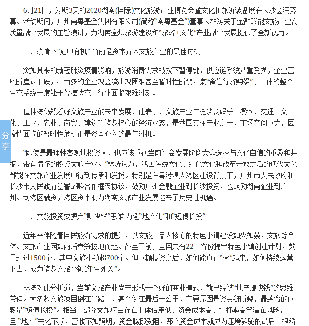 中國網(wǎng)|南粵基金董事長林濤:金融賦能文旅產(chǎn)業(yè)高質(zhì)量融合發(fā)展