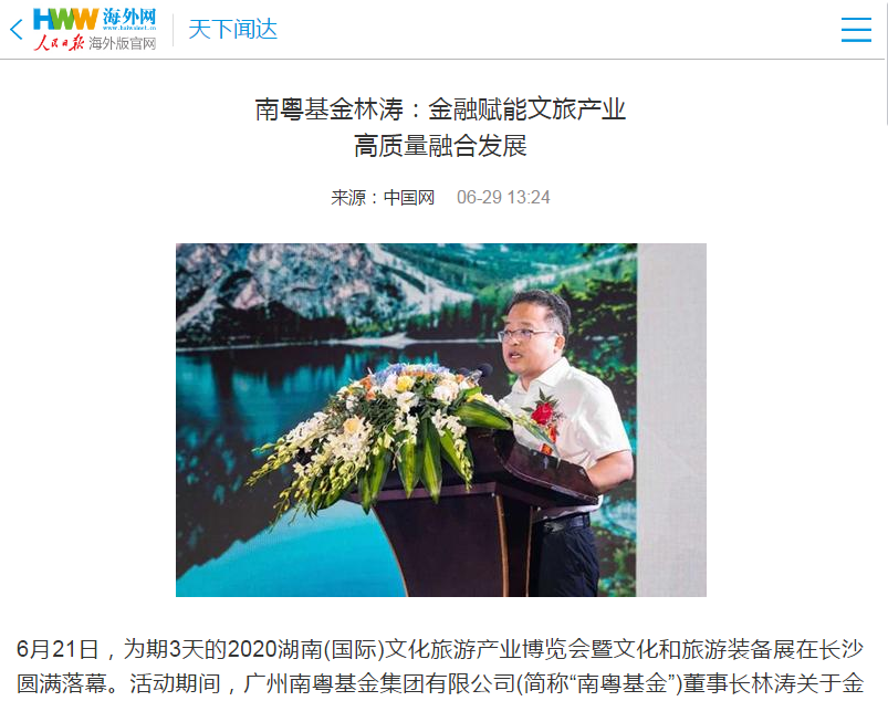 人民日報海外版|南粵基金林濤:金融賦能文旅產業(yè)高質量融合發(fā)展
