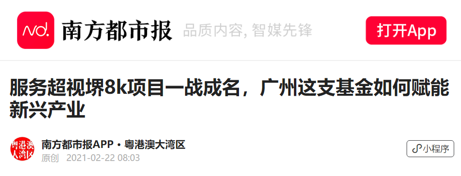 南方都市報|服務(wù)超視堺8k項(xiàng)目一戰(zhàn)成名,廣州這支基金如何賦能新興產(chǎn)業(yè)