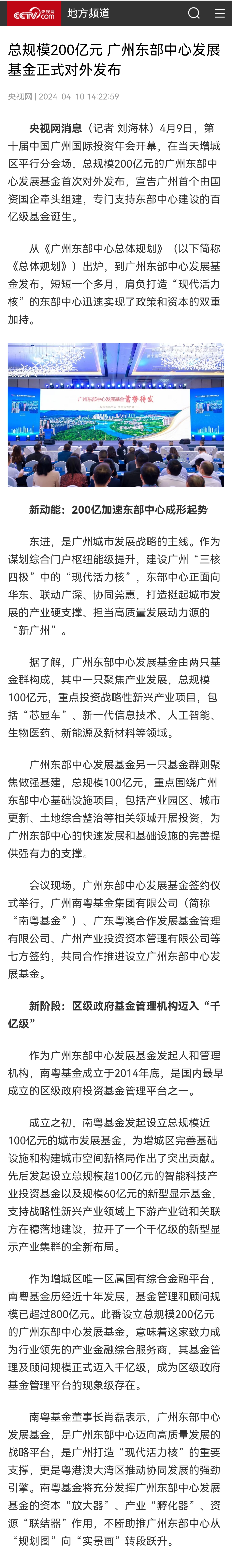 央視網(wǎng) | 總規(guī)模200億元 廣州東部中心發(fā)展基金正式對外發(fā)布