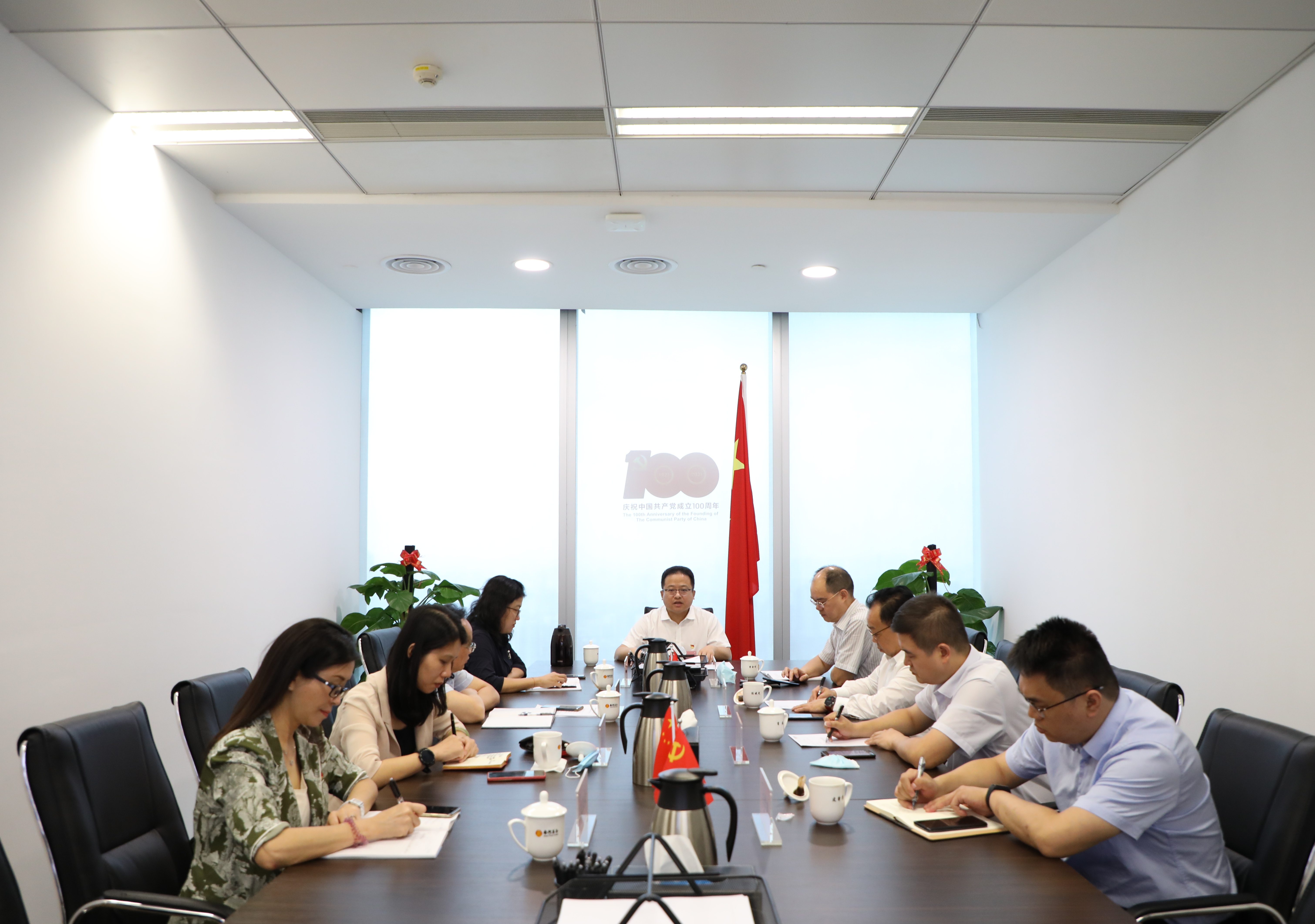 為大力弘揚(yáng)偉大建黨精神,從百年黨史中汲取豐厚營(yíng)養(yǎng)和強(qiáng)大力量,8月9日上午,南粵基金召開(kāi)黨史學(xué)習(xí)教育專(zhuān)題組織生活會(huì),深入學(xué)習(xí)貫徹落實(shí)習(xí)近平總書(shū)記近期重要講話精神,學(xué)習(xí)省市關(guān)于疫情防控、安全生產(chǎn)和三防工作會(huì)議主要精神,圍繞“學(xué)黨史、悟思想、辦實(shí)事、開(kāi)新局”主題,交流心得,剖析問(wèn)題,統(tǒng)一思想。公司黨組織書(shū)記、董事長(zhǎng)林濤以普通黨員身份參會(huì),結(jié)合自身學(xué)習(xí)收獲體會(huì)與黨員干部作了深入交流,并聯(lián)系學(xué)習(xí)工作實(shí)際深入自我剖析,同時(shí)研究部署南粵基金貫徹落實(shí)舉措。