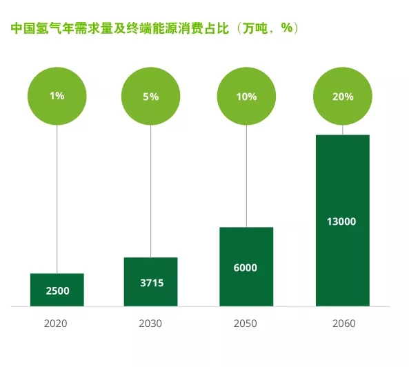 2021年4月21日,中國氫能聯(lián)盟發(fā)布《中國氫能源及燃料電池產(chǎn)業(yè)白皮書2020》,指出在2030年碳達(dá)峰情景下,我國氫氣的年需求量將達(dá)到3715萬噸,在終端能源消費(fèi)中占比約為5%;在2060年碳中和情景下,我國氫氣的年需求量將增至1.3億噸左右,在終端能源消費(fèi)中占比約為20%。由此可見,“雙碳”目標(biāo)下及技術(shù)進(jìn)步將推動中國氫能源行業(yè)發(fā)展穩(wěn)步前行。